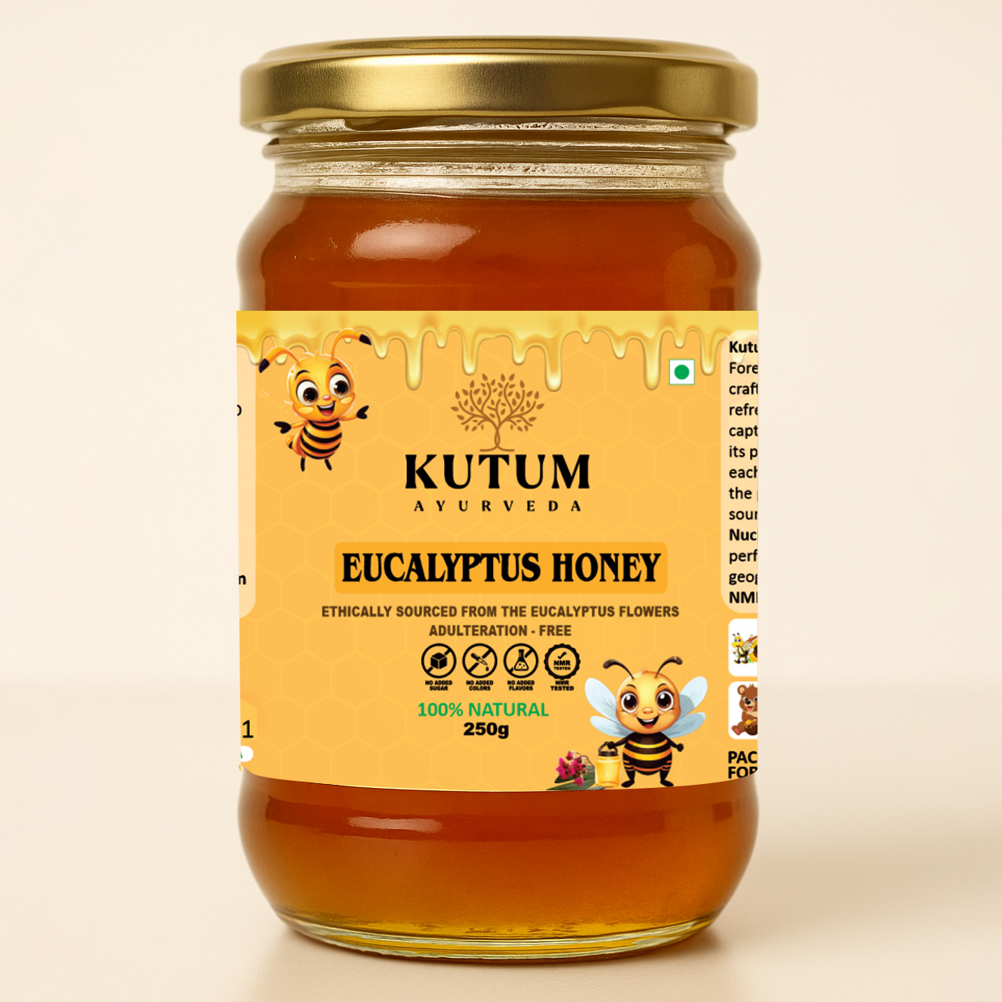 Certified by NMR (Nuclear Magnetic Resonance) to be free from adulteration, Eucalyptus Honey ensures authenticity and purity, guaranteeing consumers receive its full array of health benefits. Harvested from the prime eucalyptus flower regions in India, it embodies natural goodness and efficacy, making it a preferred choice for those seeking both flavor and holistic well-being from their honey consumption.