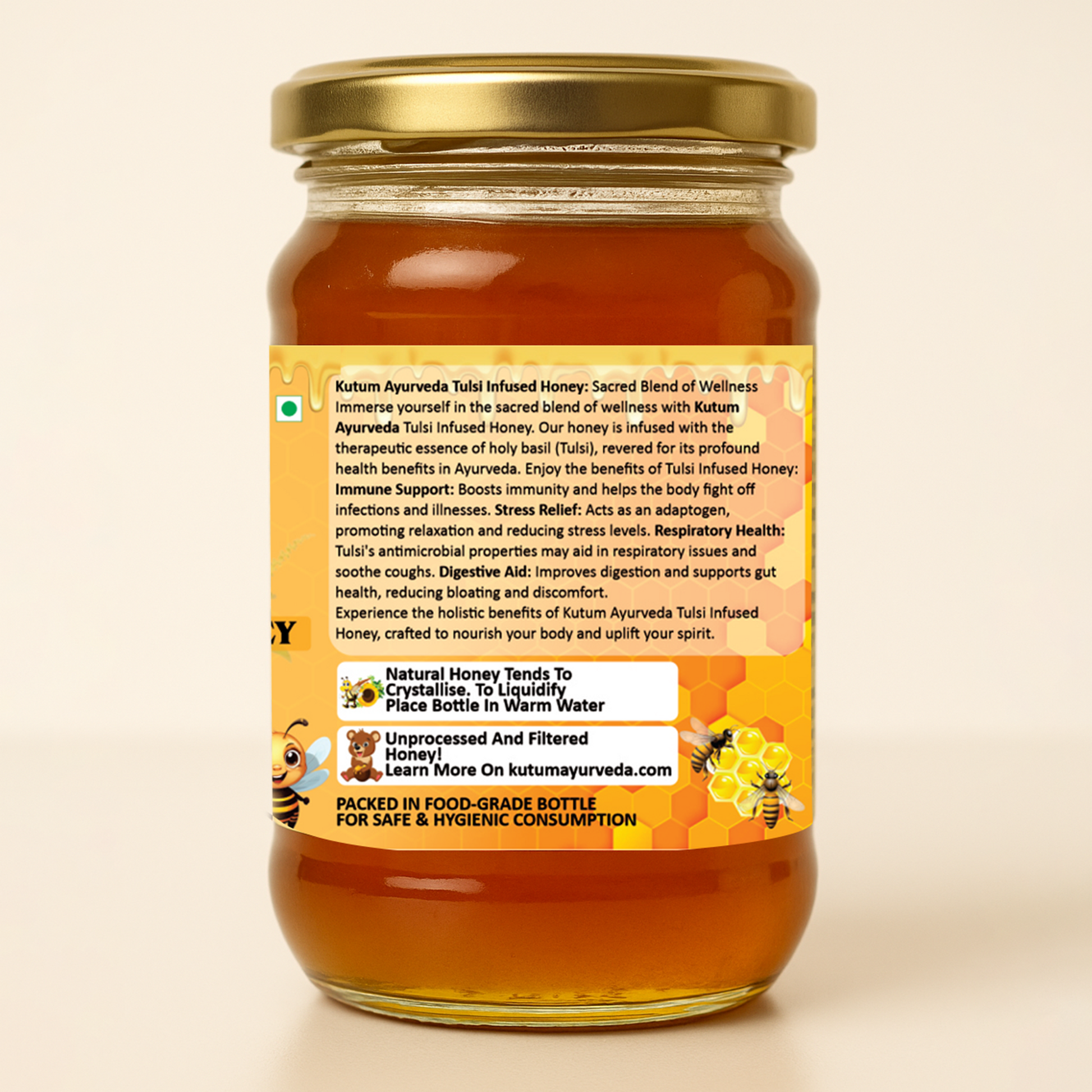 Crafted with care and infused with the essence of organic honey and tulsi, this golden elixir offers more than just sweetness—it promises a journey of wellness and rejuvenation with every drop. Whether enjoyed on its own, drizzled over desserts, or blended into beverages, Tulsi Infused Honey invites you to indulge in the therapeutic benefits of nature's bounty, ensuring a blissful fusion of flavor and holistic health.